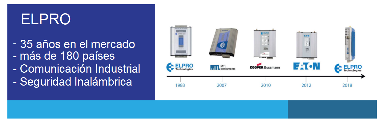 Durante más de 35 años, el negocio inalámbrico de ELPRO Technologies ha ayudado a empresas en más de 180 países a mejorar la gestión y el rendimiento de sus activos al ofrecer una gama completa de sistemas de comunicación inalámbrica fiables y seguros. ELPRO tiene una gama completa de productos para ayudar a sus instalaciones a utilizar la tecnología inalámbrica de manera segura y confiable para satisfacer incluso sus necesidades más críticas. Nuestros productos se pueden utilizar en una variedad de aplicaciones, que incluyen agua / aguas residuales, petróleo y gas, minería, medio ambiente, servicios eléctricos y automatización industrial. ELPRO ofrece soluciones inalámbricas industriales escalables desde punto a punto básico o mallado hasta implementaciones de infraestructura a gran escala. Cubrimos todas las aplicaciones desde el sensor hasta la sala de control. Nuestros productos se fabrican bajo el sistema de gestión de calidad ISO 9001-2015, por lo que puede estar seguro de que nuestros productos son de la más alta calidad y confiabilidad. En ELPRO Technologies nos esforzamos por mejorar continuamente nuestros productos y servicios para cumplir con los requisitos de nuestros clientes. Mejoramos constantemente el rendimiento de nuestros productos para satisfacer las demandas de nuestras industrias. A principios de 2018, Aquamonix Pty Ltd adquirió la marca ELPRO, una marca global de confianza, reconocida y respetada en el mercado desde 1983. Desde principios de 2018, cuando fuimos adquiridos por Aquamonix, hemos desarrollado una visión de empresa renovada y revitalizada. Seremos conocidos como los líderes en comunicaciones industriales seguras y mantendremos y construiremos sobre nuestra posición en el mercado y aseguraremos que se utilicen nuestros 35 años de experiencia, trabajo duro, tecnologías líderes y transmisión. Nos aseguraremos de que su conexión inalámbrica nunca pierda el ritmo y de que le proporcionemos comunicaciones industriales seguras.